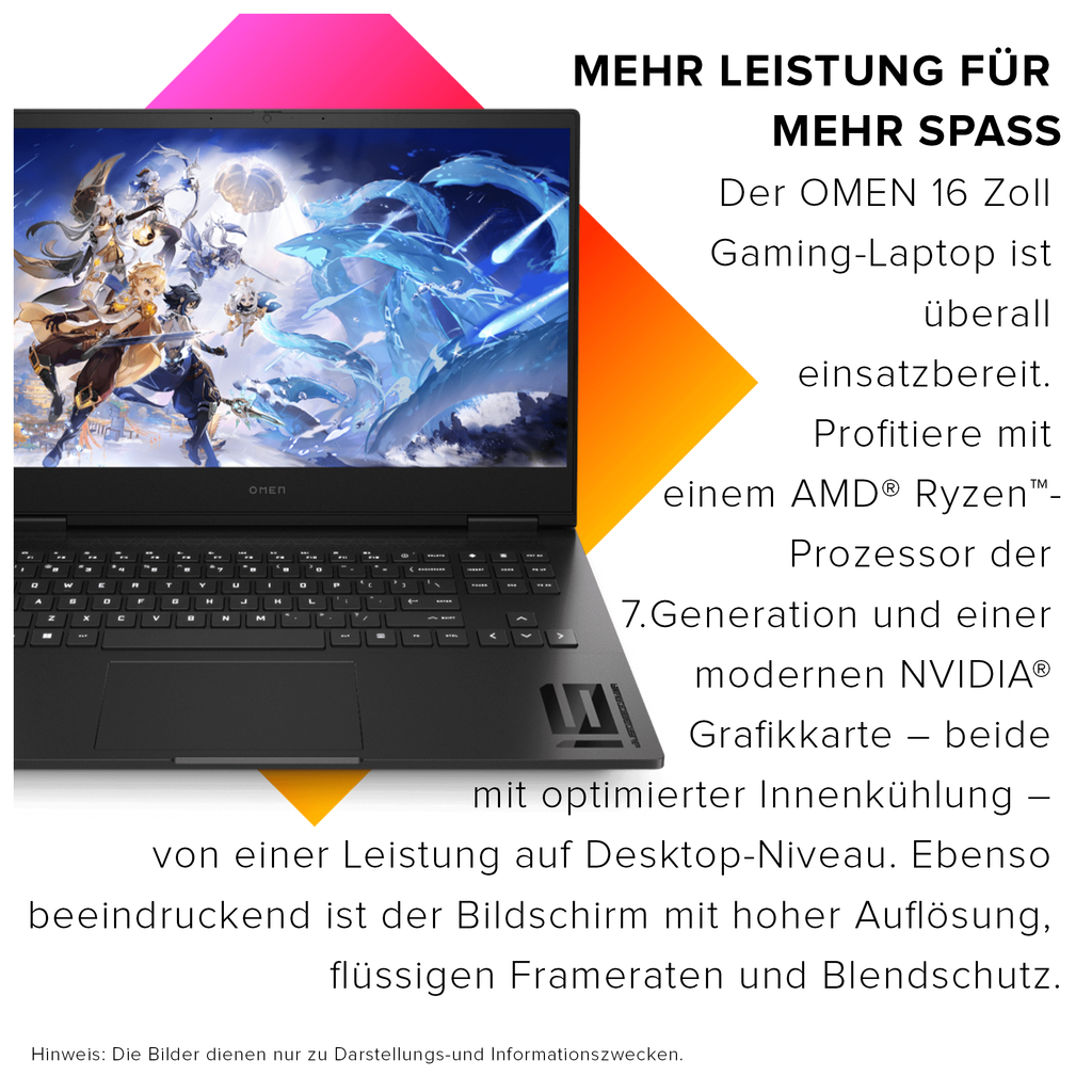 Der OMEN 16 Zoll Gaming-Laptop ist überall einsatzbereit. Profitiere mit einem AMD Ryzen-Prozessor der 7.Generation und einer modernen NVIDIA Grafikkarte– beide mit optimierter Innenkühlung – von einer Leistung auf Desktop-Niveau. Ebenso beeindruckend ist der Bildschirm mit hoher Auflösung, flüssigen Frameraten und Blendschutz.