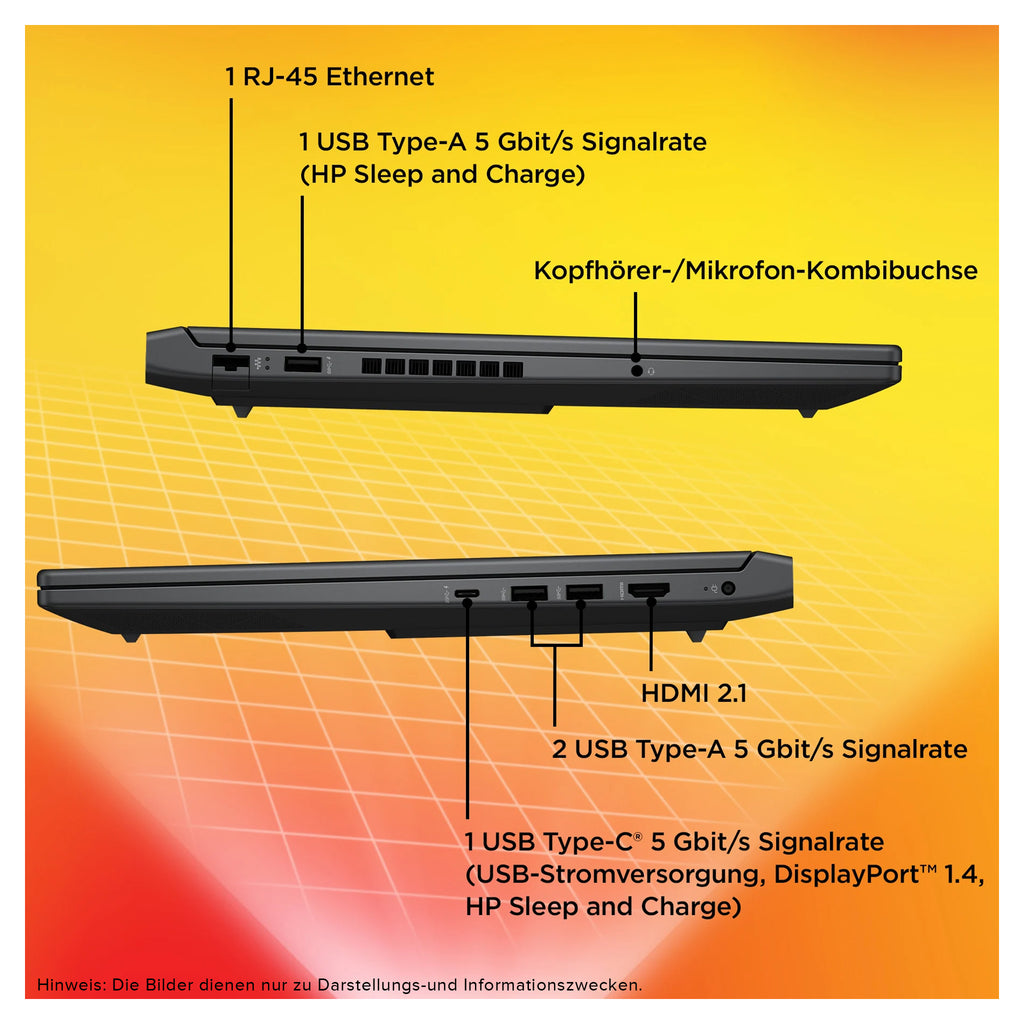 Der Victus überzeugt durch schnelle Konnektivitätsstandards wie Wi-Fi 6 und Bluetooth 5.3, großzügige Anschlussvielfalt (u.a. USB Type-C, HDMI 2.1, mehrere USB-A-Ports, LAN) und eine beleuchtete Tastatur mit Ziffernblock. Die HP True Vision FHD-Kamera mit Dual-Mikrofonen sorgt für starke Video-Chats, während DTS:X Ultra-Lautsprecher und HP Audio Boost besten Klang liefern. Details wie die Privacy-Kameraverschluss und nachhaltige Tastaturmaterialien runden das hochwertige Nutzererlebnis ab.