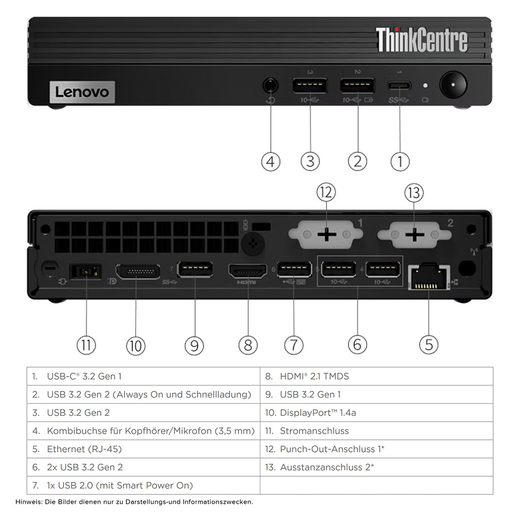 Der Lenovo ThinkCentre M70q Gen 4 Tiny (Intel) ist platzsparend und dennoch leistungsstark. Dieser PC bietet die Leistung eines vollwertigen Desktops mit bis zu Intel vPro ® mit Intel ® Core™-Prozessoren der 13. Generation und unterstützt Dual-HDD- und SDD-Speicher. Er verfügt außerdem über optionale Dual-Erweiterungsports, die genau auf Ihre Anforderungen abgestimmt konfiguriert werden können. Ideal für den modernen Berufstätigen, egal ob im Gesundheitswesen, im Einzelhandel oder im Front- oder Backoffice.