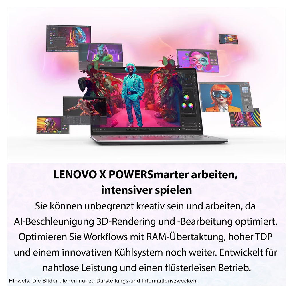 Das Lenovo Yoga Pro 7 14IAH10 verfügt über ein brillantes 14,5 Zoll großes 3K-OLED-Touchscreen-Display mit einer Auflösung von 3000 x 1876 Pixeln, das atemberaubende Bilder liefert. Das hochhelle Panel bietet bis zu 1000 Nits im HDR-Modus und 500 Nits typische SDR-Helligkeit und sorgt so für außergewöhnliche Klarheit und lebendige Farben – sowohl bei der Arbeit als auch bei der Unterhaltung. Dank 100 % DCI-P3-Farbraumabdeckung, Dolby Vision und DisplayHDR™ True Black 1000-Zertifizierung erleben Nutzer naturgetreue Bilder mit tiefem Kontrast und satter Sättigung. Das glänzende, fingerabdrucksichere Glas verleiht dem Bildschirm einen hochwertigen Touch und reduziert Schlieren für eine klarere Sicht.
